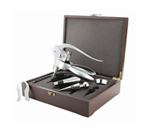 A good corkscrew is essential for any wine lover, and we bring you one of the finest on the market. This five-piece set includes a "Connoisseur Corkscrew," matching foil cutter, drip stop, no-drip pourer and bottle stopper in an elegant wood case.